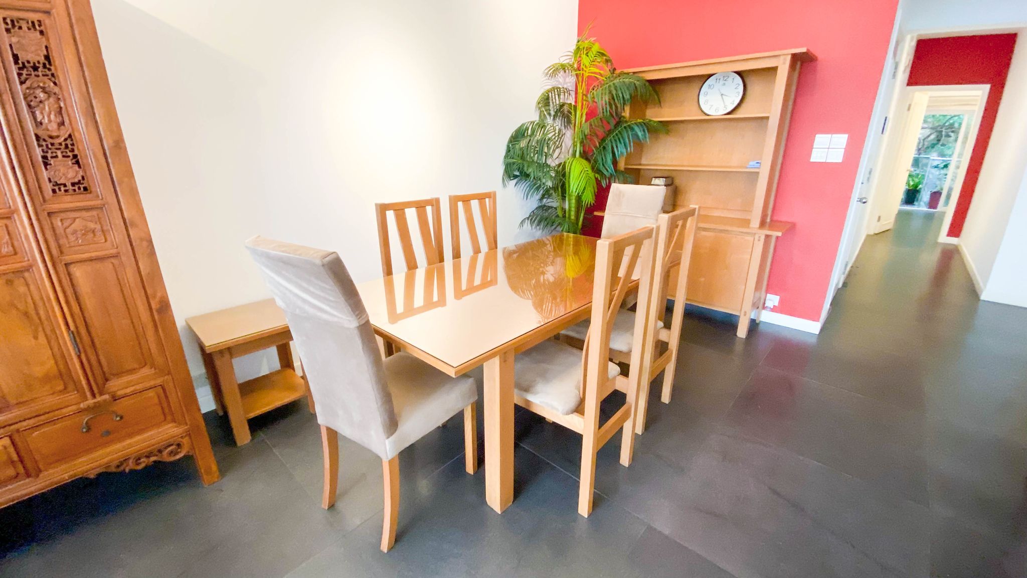 • The whole house is fully equipped with gray slate tile floors